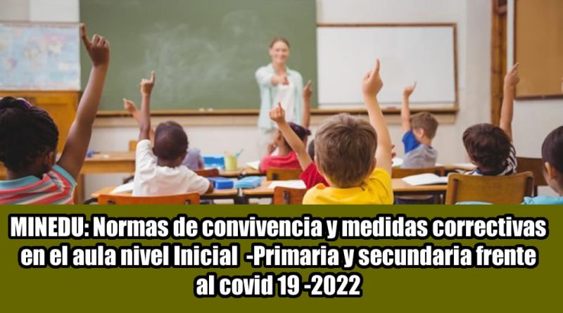 MINEDU: Normas de convivencia y medidas correctivas en el aula nivel Inicial -Primaria y secundaria frente al covid 19 -2022