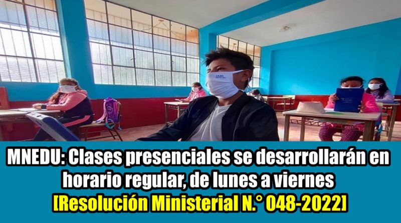 En la Resolución Ministerial N.° 048-2022-MINEDU, publicada en El Peruano, se dispuso que el servicio educativo se desarrollará en horario regular, de lunes a viernes, con la presencia física del docente y los estudiantes en instituciones que no excedan el aforo máximo permitido, esto determinado por el respectivo centro.