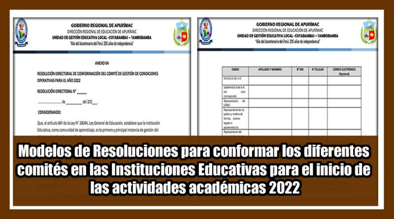 Estimados docentes i Directores de las IE. En esta sección les compartimos modelos de Resoluciones para conformar los diferentes comités en las Instituciones Educativas para el inicio de las actividades académicas 2022.