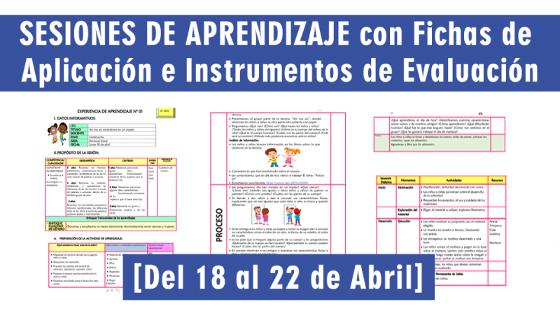 Estimados Docentes en esta oportunidad les compartimos estas Excelentes sesiones de aprendizaje totalmente desarrolladas con fichas de aplicación e instrumentos de evaluación para nivel inicial  del lunes 18 al 22 de abril del presente año escolar.