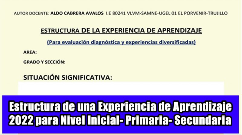 Estimados docentes, en esta oportunidad te ofrecemos esta Estructura de una Experiencia de Aprendizaje 2022 para Nivel Inicial- Primaria- Secundaria que te permitirá seguir mejorando tu labor docente donde te facilitará la construcción de tus experiencias de aprendizaje.