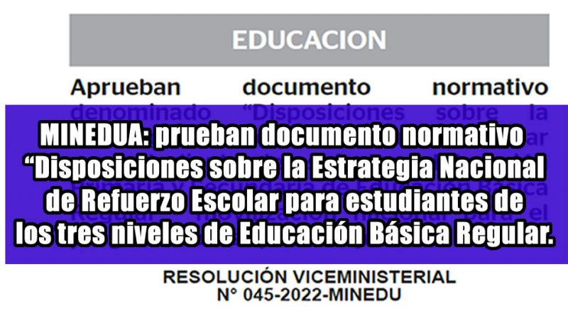 MINEDUA: prueban documento normativo “Disposiciones sobre la Estrategia Nacional de Refuerzo Escolar para estudiantes de los tres niveles de Educación Básica Regular.