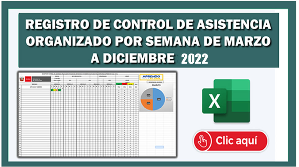 Estimados docentes de todas las áreas ,en esta oportunidad les compartimos este excelente REGISTRO DE CONTROL DE ASISTENCIA ORGANIZADO POR SEMANA DE MARZO A DICIEMBRE 2022.que estamos seguros que les será de mucha utilidad para que organice el control de su asistencia.
