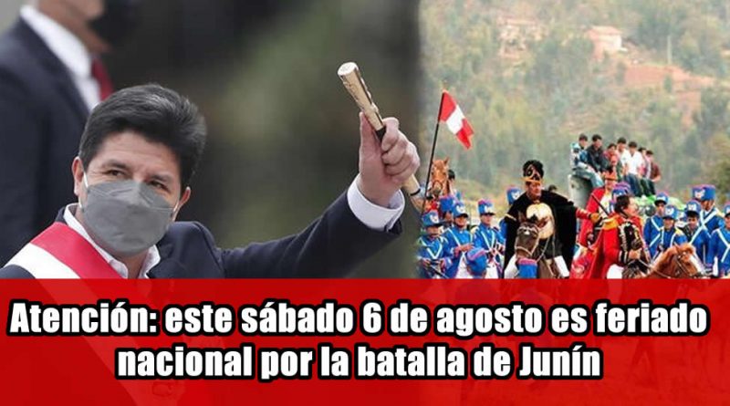 El Gobierno promulgó la ley que declara el 6 de agosto feriado nacional en todas las entidades e instituciones públicas, en conmemoración de la batalla de Junín, según norma publicada en el Diario Oficial El Peruano.