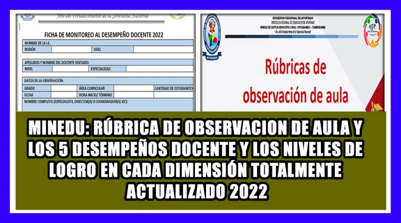 MINEDU: RÚBRICA DE OBSERVACION DE AULA Y LOS 5 DESEMPEÑOS DOCENTE Y LOS NIVELES DE LOGRO EN CADA DIMENSIÓN TOTALMENTE ACTUALIZADO 2022