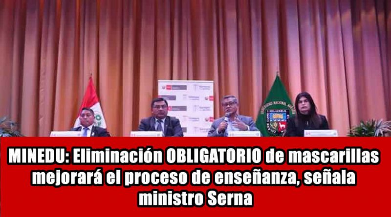 El ministro de Educación, Rosendo Serna, saludó la oficialización de la norma que elimina el uso obligatorio de la mascarilla en espacios abiertos y lugares cerrados ventilados y consideró que la medida favorecerá al sector Educación porque permitirá mejorar la comunicación entre escolares y docentes y optimizar el proceso de enseñanza y aprendizaje en las instituciones educativas.