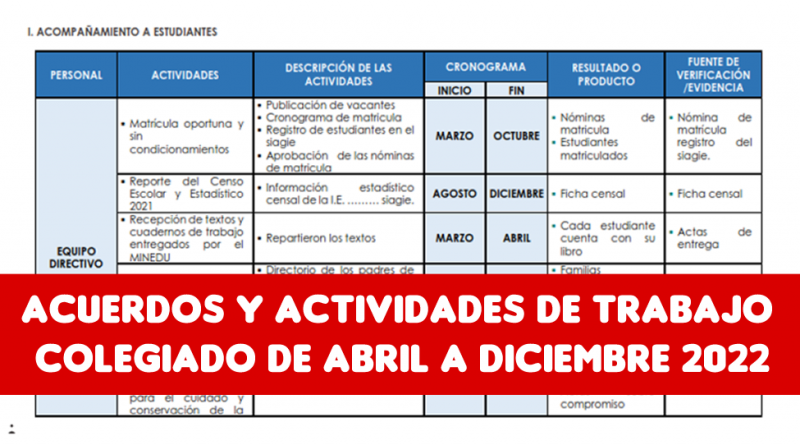 Acuerdos y actividades de Trabajo Colegiado de abril a diciembre 2022