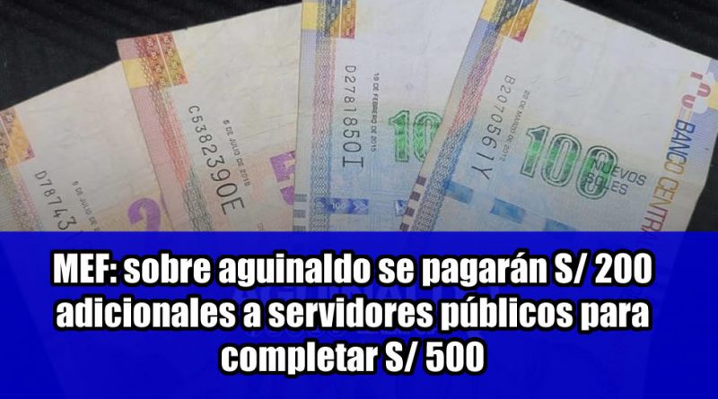 MEF: sobre aguinaldo se pagarán S/ 200 adicionales a servidores públicos para completar S/ 500