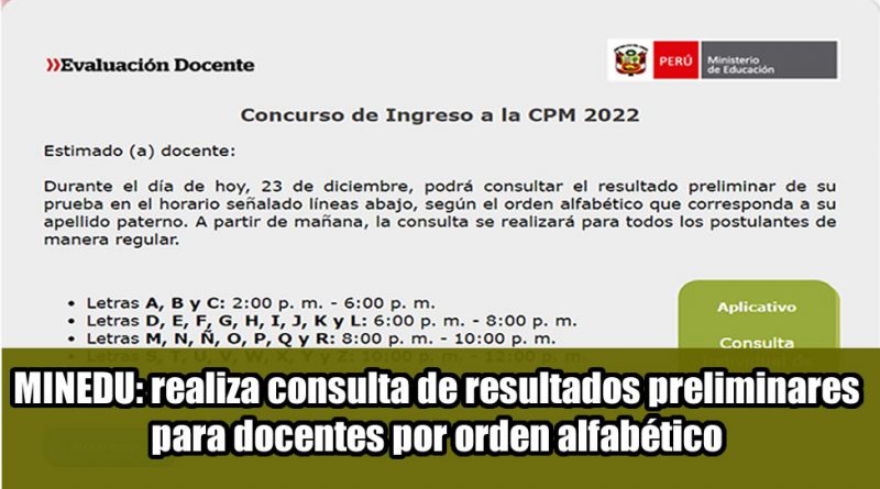 Minedu realiza consulta de resultados preliminares para docentes por orden alfabético