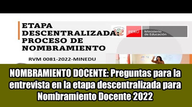 NOMBRAMIENTO DOCENTE: Preguntas para la entrevista en la etapa descentralizada para Nombramiento Docente 2022