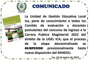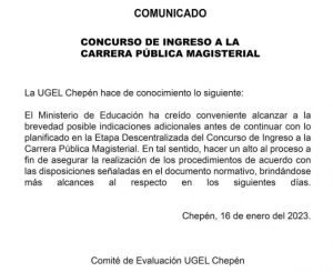 Diversas UGELs suspenden temporalmente proceso de etapa NOMBRAMIENTO DOCENTE 2022