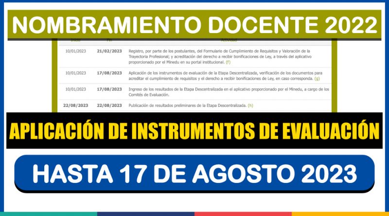 NOMBRAMIENTO DOCENTE 2022: Aplicación de los Instrumentos de Evaluación será hasta el 17 de Agosto 2023 – ETAPA DESCENTRALIZADA