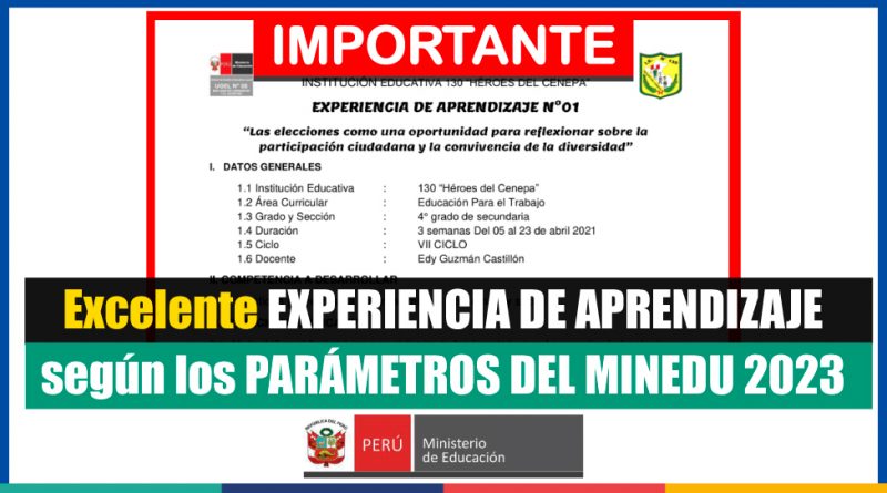 Excelente EXPERIENCIA DE APRENDIZAJE de acuerdo a los PARÁMETROS DEL MINEDU 2023 [Conócelo aquí]