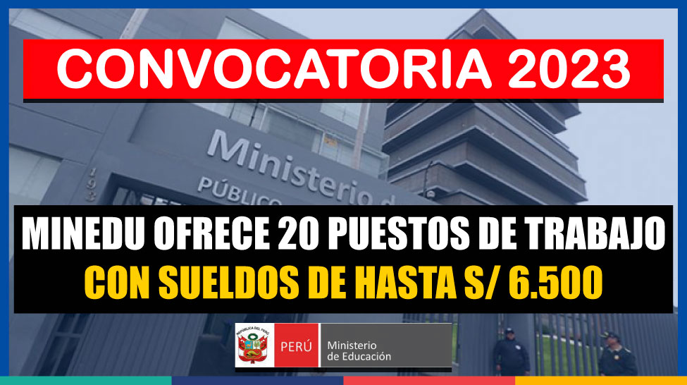 CONVOCATORIA 2023: MINEDU ofrece 20 Puestos de Trabajo con Sueldos de hasta S/ 6.500 [Postula ya]
