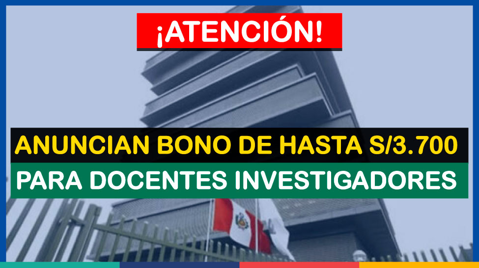 ¡ATENCIÓN MAESTROS! Anuncian BONO de hasta S/3.700 para Docentes Investigadores [Infórmate aquí]