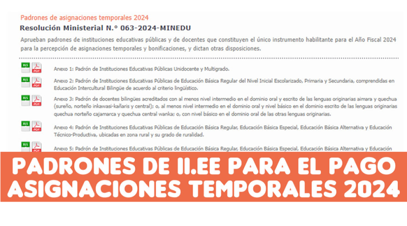 Padrones de II.EE para el pago de Asignaciones temporales 2024 – MINEDU