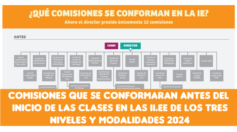 Cada año las instituciones educativas públicas del país tiene que conformar doce comisiones o comités que son liderados por el director, pero con participación de los integrantes de la comunidad educativa. A qui les compartimos las comisiones y quienes los integran: