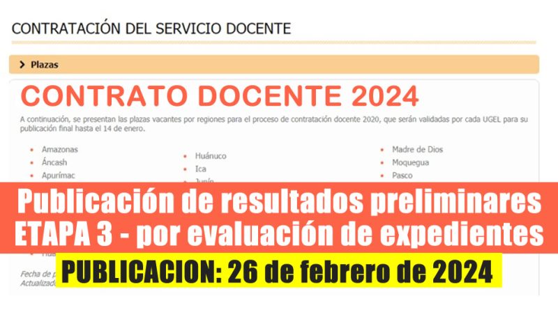 CONTRATO DOCENTE 2024: Publicación de resultados preliminares | ETAPA 3 – Por evaluación de expedientes [26 de Febrero de 2024]