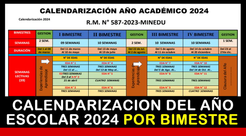 Calendarización del año escolar 2024 por Bimestres