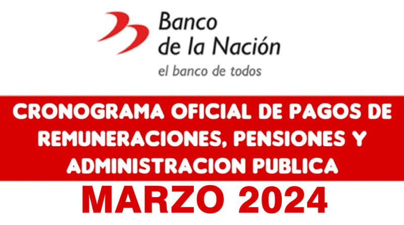 CRONOGRAMA DE PAGOS Banco de la Nación (MARZO 2024) Pago de Remuneraciones – Pensiones – Administración Pública