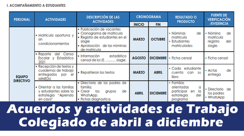 Acuerdos y actividades de Trabajo Colegiado de abril a diciembre