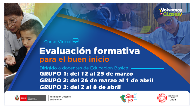 Te invitamos a inscribirte y participar en el segundo curso del buen inicio del año escolar denominado “Evaluación formativa para el buen inicio”, que el Ministerio de Educación, a través de la Dirección de Formación Docente en Servicio-DIFODS, brinda de manera gratuita a todos los docentes de educación básica.