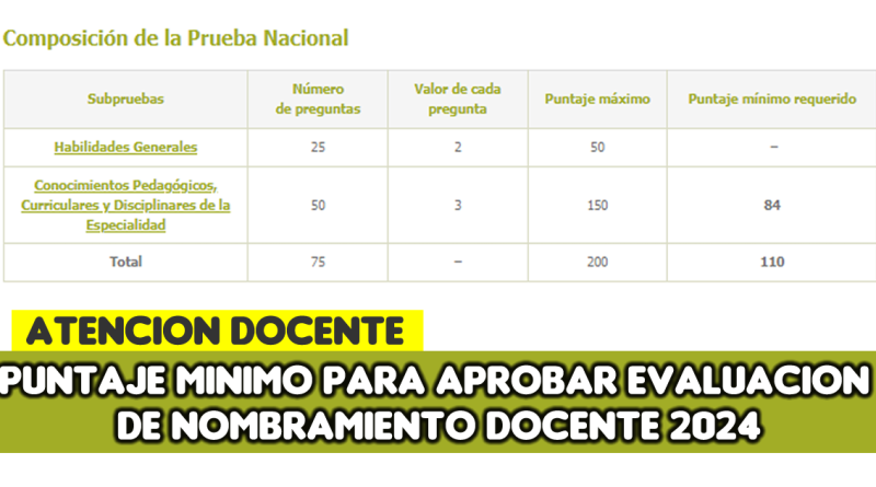 Puntaje mínimo para aprobar evaluación de Nombramiento Docente 2024