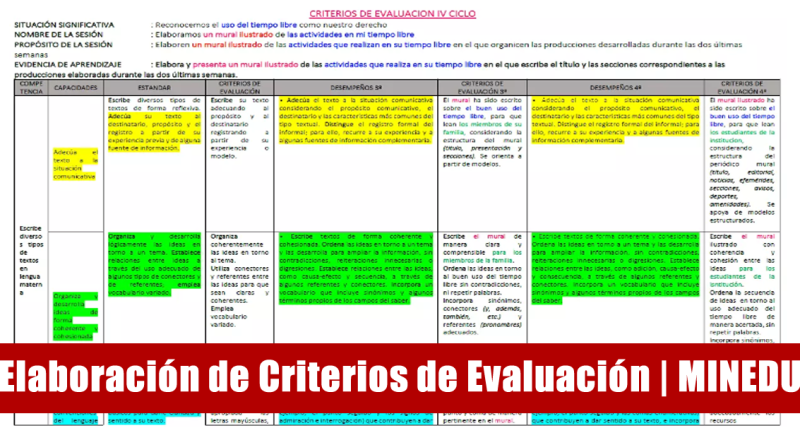 ENLACE DE LECTURA: ELABORACIÓN DE CRITERIOS DE EVALUACIÓN
