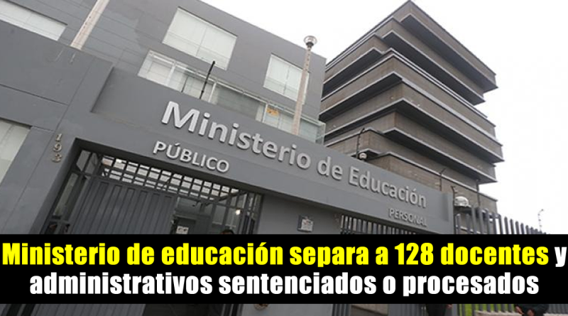 El ministerio de Educación in formó que separaron a 105 docentes y 23 administrativos de colegios públicos y privados por tener sentencias o procesos por diversos delitos, luego de las supervisiones y verificaciones efectuadas, del 1 de abril al 15 de mayo, con el fin de proteger a los estudiantes y hacer de las escuelas lugares seguros.