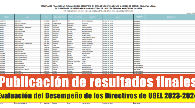 Publicación de los resultados finales de la evaluación | Evaluación del Desempeño de los Directivos de UGEL 2023-2024