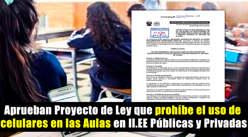 Aprueban Proyecto de Ley que prohíbe el uso de celulares en las Aulas en II.EE Públicas y Privadas