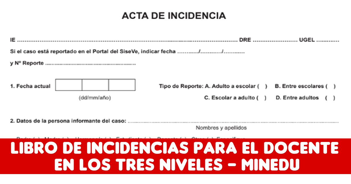 Libro de Incidencias para el Docente en los Tres Niveles