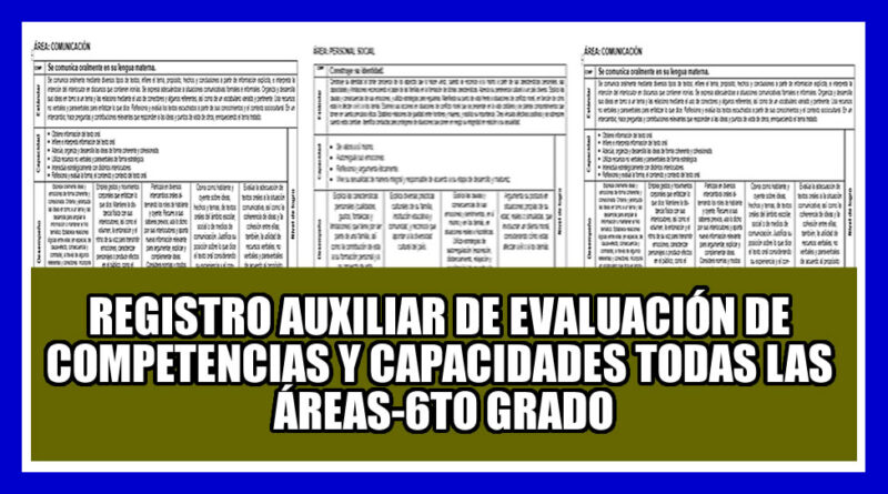 REGISTRO AUXILIAR DE EVALUACIÓN DE COMPETENCIAS Y CAPACIDADES TODAS LAS ÁREAS-6TO GRADO