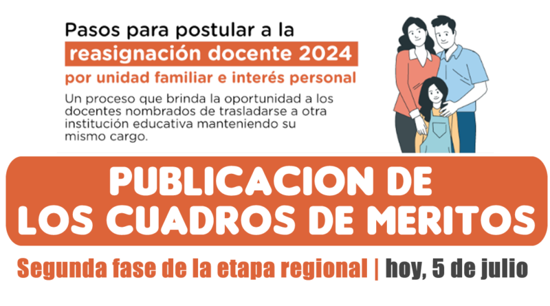 REASIGNACION DOCENTE 2024: Publicación de cuadros de méritos de la segunda fase de la etapa regional | hoy, 5 de julio
