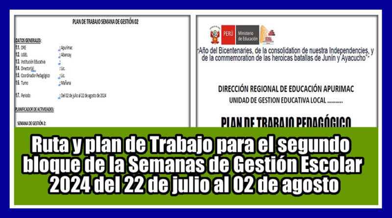 Ruta y plan de Trabajo para el segundo bloque de la Semanas de Gestión Escolar 2024 del 22 de julio al 02 de agosto