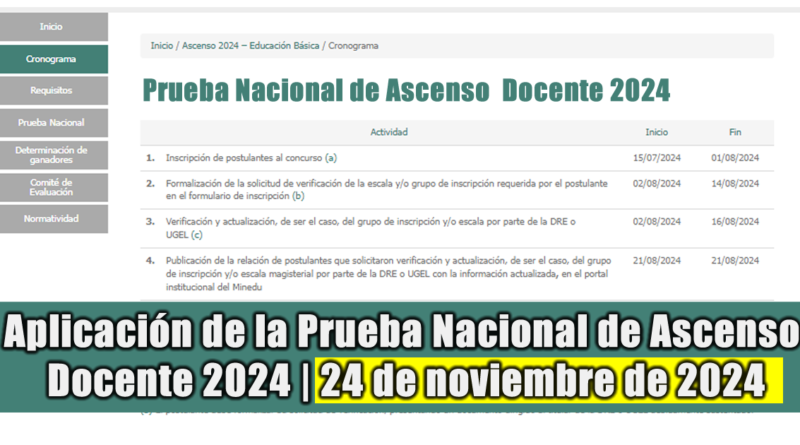 Aplicación de la Prueba Nacional de Ascenso Docente 2024 | 24 de noviembre de 2024