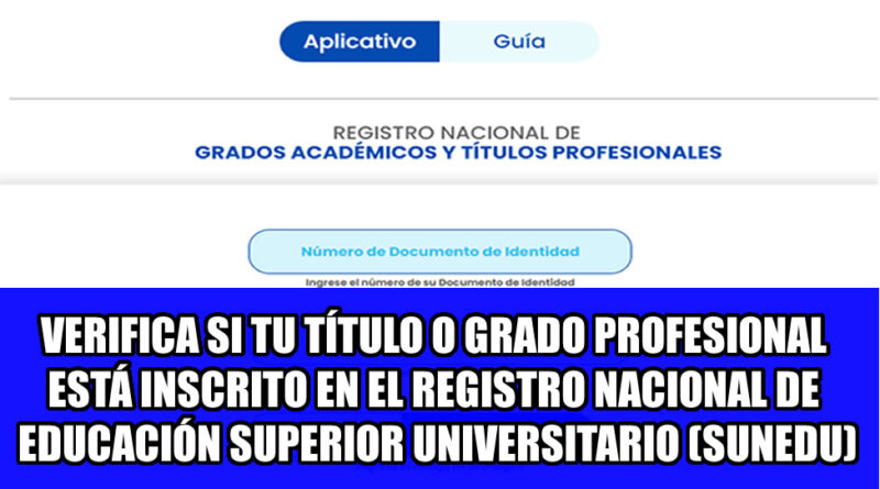 VERIFICA SI TU TÍTULO O GRADO PROFESIONAL ESTÁ INSCRITO EN EL REGISTRO NACIONAL DE EDUCACIÓN SUPERIOR UNIVERSITARIO (SUNEDU)