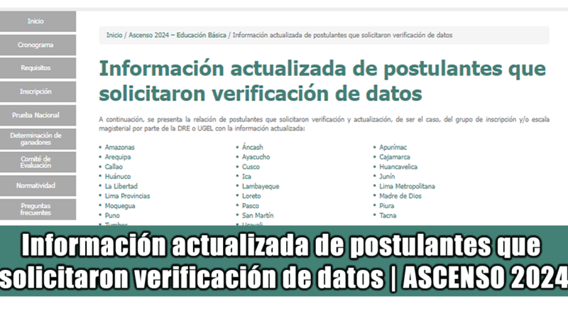 Información actualizada de postulantes que solicitaron verificación de datos | ASCENSO DOCENTE 2024