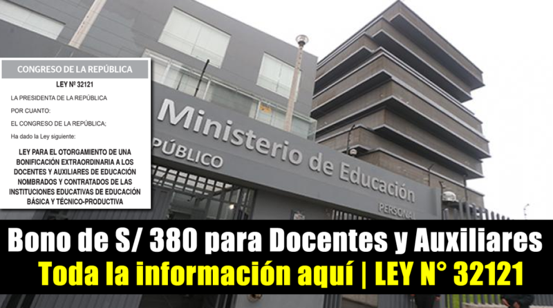 Oficializan el Bono de S/ 380 para Docentes y Auxiliares de Educación. Toda la información aquí | LEY N° 32121