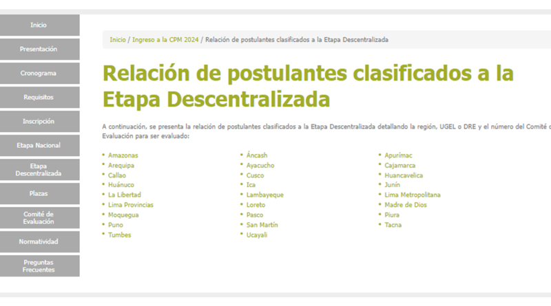 Relación de postulantes clasificados a la Etapa Descentralizada | Nombramiento Docente 2024