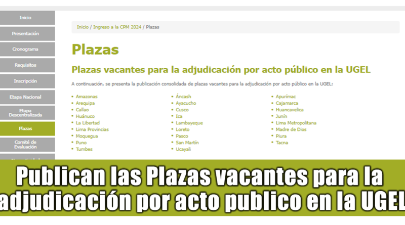 Plazas vacantes para la adjudicación por acto público en la UGEL