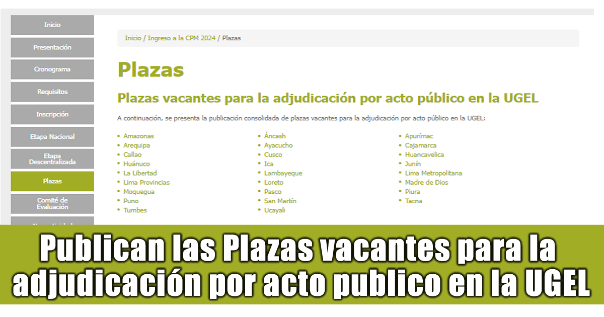 Plazas vacantes para la adjudicación por acto público en la UGEL | Nombramiento Docente 2024
