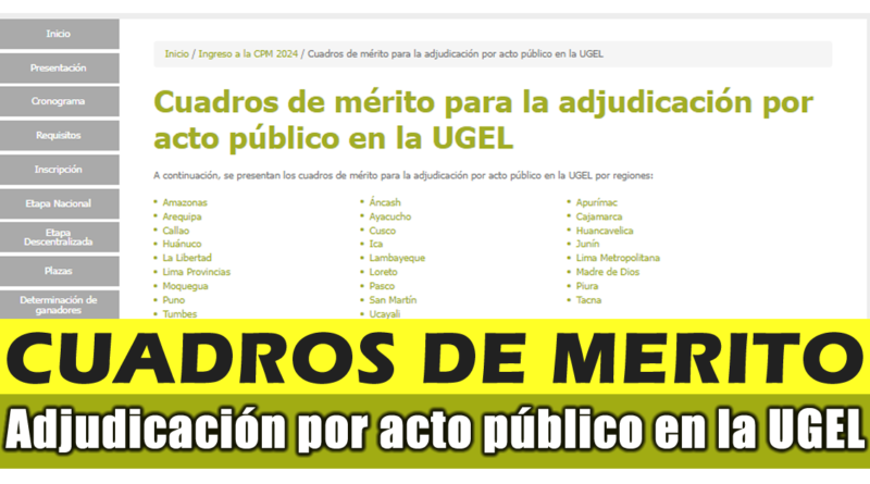 Cuadros de mérito para la adjudicación por acto público en la UGEL