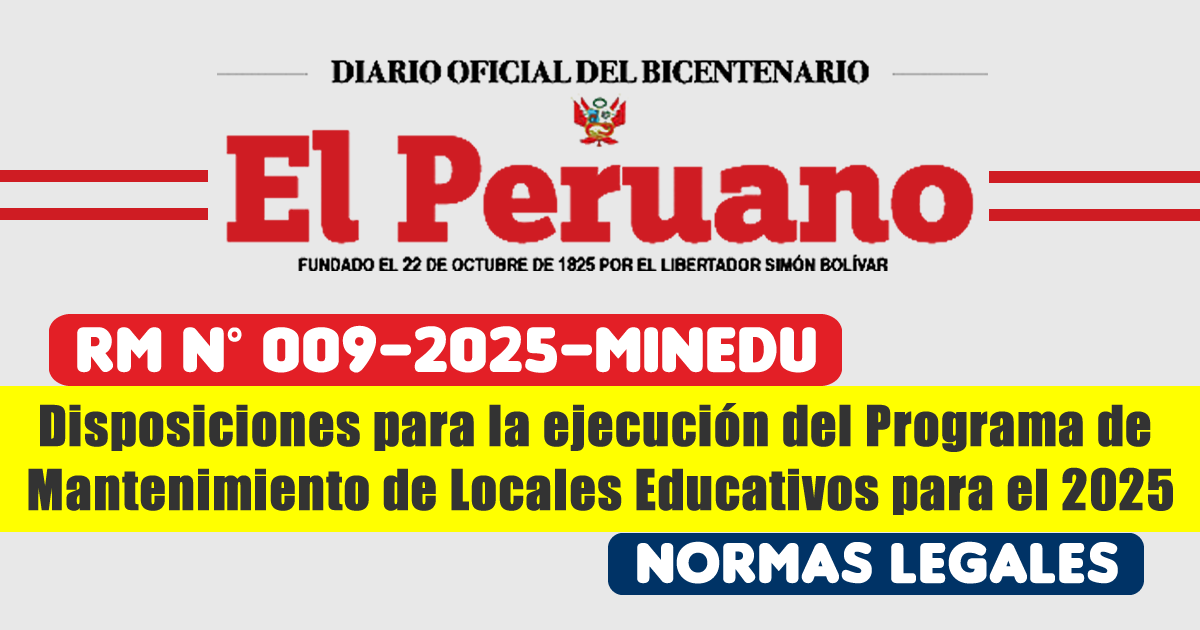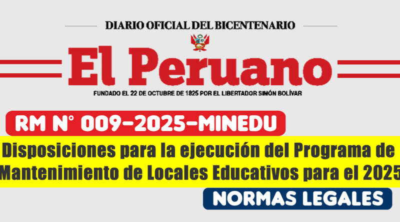 RM N° 009-2025-MINEDU | Disposiciones para la ejecución del Programa de Mantenimiento de Locales Educativos para el Año 2025