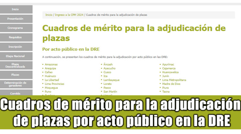 A continuación, se presentan los cuadros de mérito para la adjudicación por acto público en las DRE: