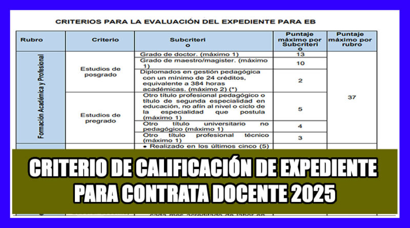 CRITERIO DE CALIFICACIÓN DE EXPEDIENTE PARA CONTRATA DOCENTE 2025