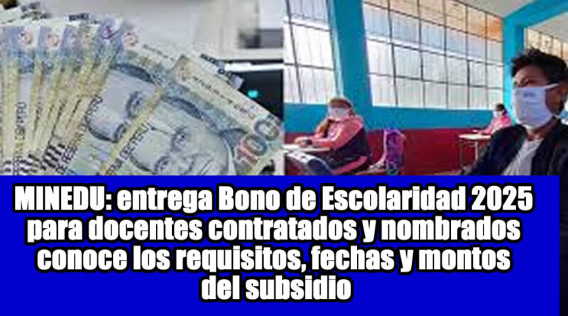 MINEDU: entrega Bono de Escolaridad 2025 para docentes contratados y nombrados conoce los requisitos, fechas y montos del subsidio