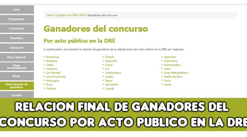 Relación final de Ganadores del concurso Por acto público en la DRE
