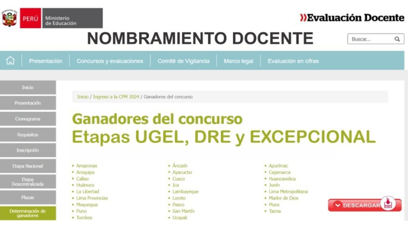 Ganadores del Nombramiento Docente Etapa UGEL
