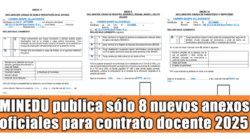A continuación compartimos los 8 nuevos anexos publicados en el portal del Minedu válidos para contrato docente 2025 en formato word